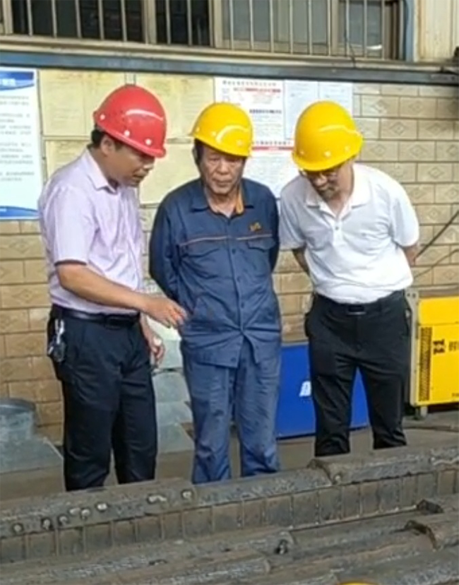 2021年7月15日,公司再次邀請建黨100周年“七一勛章”獲得者艾愛國來我公司,就埋弧燒焊的焊嘴角度,電流電壓的匹配、滾子的轉(zhuǎn)速等技術(shù)難題,對我公司青年技師進行技術(shù)指導,公司總經(jīng)理劉美林全程陪同。