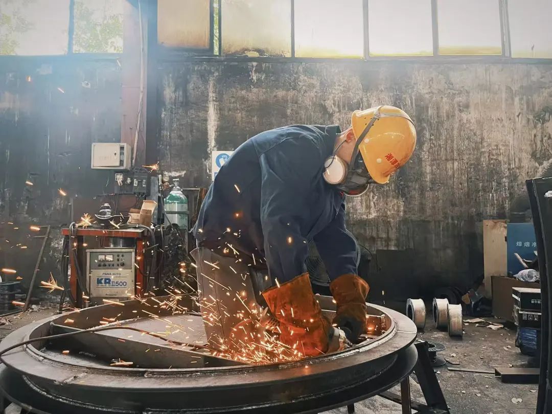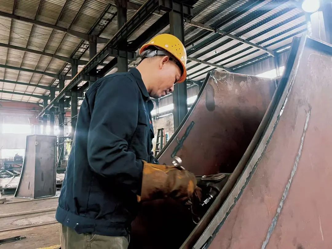 楊襲曾是泰富重工的“一周一打卡”自由職業(yè)者。在行業(yè)寒冬的沖擊下,泰富為了降低成本,不得不采取靈活的用工模式,楊襲在外出尋找工作的過(guò)程中,機(jī)緣巧合之下,最終加入了湘冶。盡管他的身份是勞務(wù)關(guān)系,但這從未限制他的擔(dān)當(dāng)。他憑借精湛的鉚焊技術(shù),成立了這個(gè)充滿活力的班組。在越南滾軸篩項(xiàng)目中,楊襲憑借其過(guò)硬的鉚焊技術(shù),解決了精密焊接中的難題,通過(guò)精準(zhǔn)的電流參數(shù)設(shè)置和獨(dú)特的鉚焊手法,確保了鉚焊質(zhì)量,為項(xiàng)目的順利交付立下汗馬功勞。他不僅技術(shù)過(guò)硬,而且工作態(tài)度認(rèn)真負(fù)責(zé),為班組奠定了堅(jiān)實(shí)的基礎(chǔ)。盡管他并非全職員工,但他對(duì)工作的投入和專(zhuān)注,讓他在車(chē)間里贏得了極高的聲譽(yù)。他深知,只有以身作則,才能帶領(lǐng)班組走向成功。他用自己的行動(dòng)詮釋著什么是敬業(yè)精神,什么是團(tuán)隊(duì)的凝聚力。